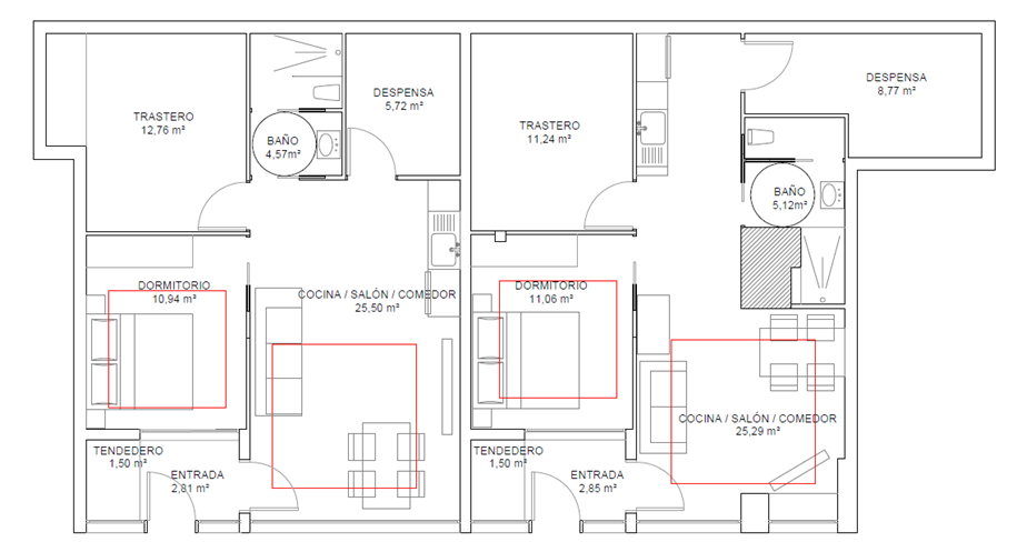 Se trata de 2 viviendas muy similares entre sí, tanto en dimensión como en la distribución que se les va a dar. Ambas viviendas tendrán una fachada amplia que aportará mucha luz a su interior.
