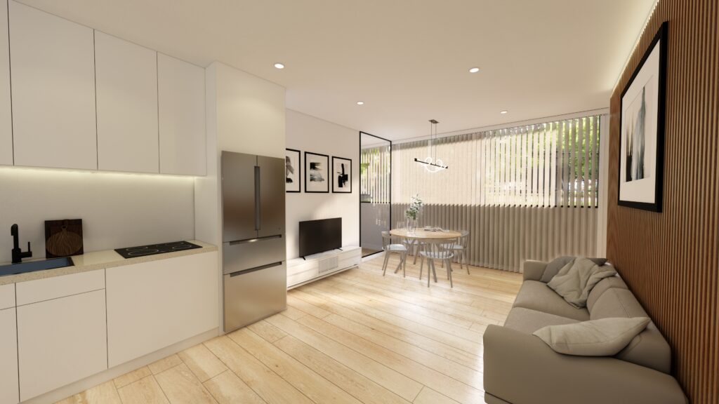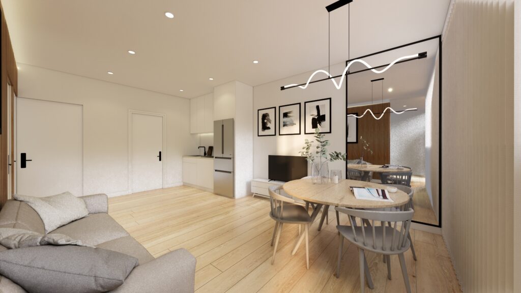 A continuación, las imágenes representadas replican cómo será la distribución final de las viviendas, con una propuesta de decoración simulada.